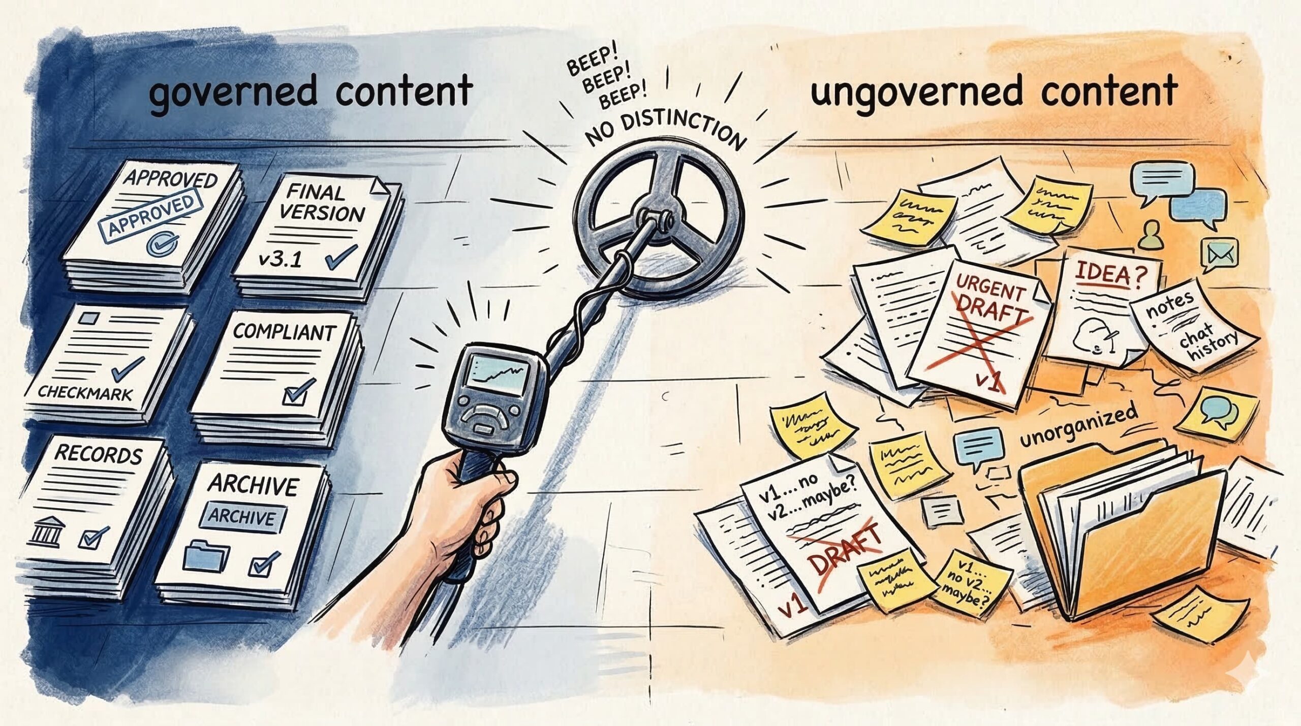 Microsoft knows identity. It knows which user is asking and which content they’re allowed to see. What it doesn’t know, and was never designed to know, is whether any given piece of content is approved, current, or authoritative.